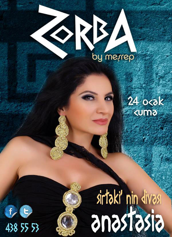 GECE HAYATI Anastasia Sirtaki’ye geliyor AnkaraSosyete - 15 Ocak 2014 FacebookTwitterPinterestWhatsApp Güzel şarkıcı Anastasia Ankaralılara sirtaki yaptırack. Ankara’nın yeni bombası Zorba by Meşrep 24 Ocak 2014 Cuma gecesi Anastasia’yı konuk edecek. Rez: 03124385553