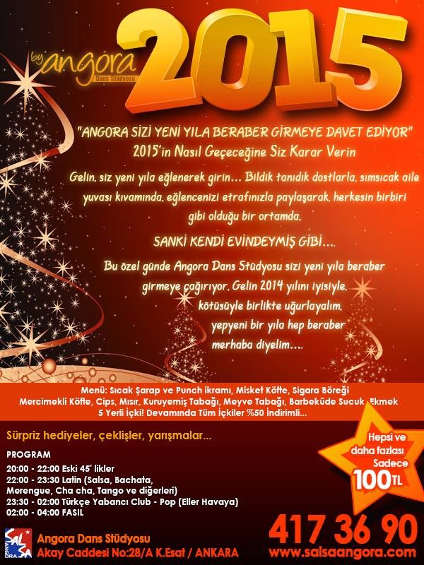 Angora Dans Stüdyosu 2015 Yılbaşı Menüsü: