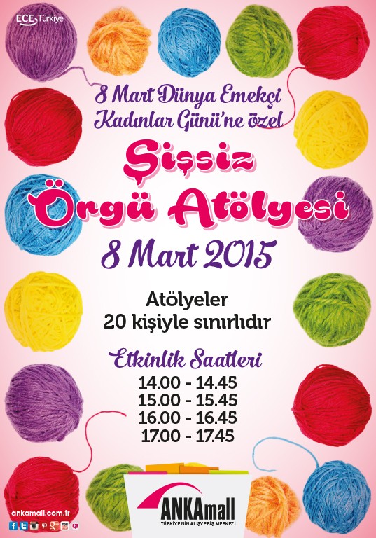 Ankara’nın en büyük alışveriş merzkezlerinden ANKAmall, 8 Mart Dünya Emekçi Kadınlar Günü’ne özel bir örgü atölyesi düzenliyor.
