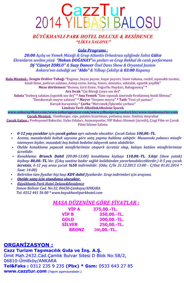 Ana Sayfa YILBAŞI 2014 Büyükhanlı Park Hotel Yılbaşı 2014