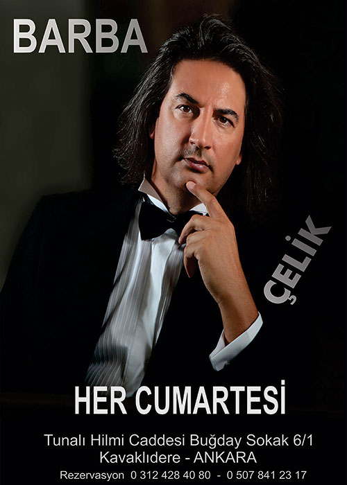 Şarkılarıyla bir çok müzikseverin beğenisini kazanan Çelik Her Cumartesi Ankara’nın yeni mekanı Barba’da sahne alacak. Detaylı Bilgi: 428 40 80