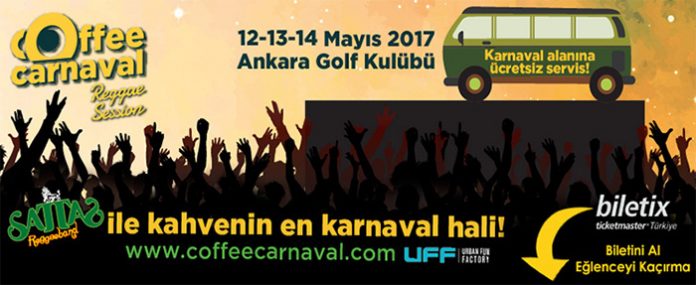 12-13-14 Mayıs 2017 Ankara’da ikincisi düzenlenenecek olan Coffie Carnaval Ankara Golf Kulübü’nün Ahlatlıbel Tesisleri’nde düzenlenecek. Carnaval aynı zamanda 3. dalga Speciality Coffee akımının temsilcileri ve geleneksel Türk kahvesinin duayenleri ile Şehri buluşturacak. Coffie Carnaval’ın bu yıl ki konsepti ”Reggae Session”