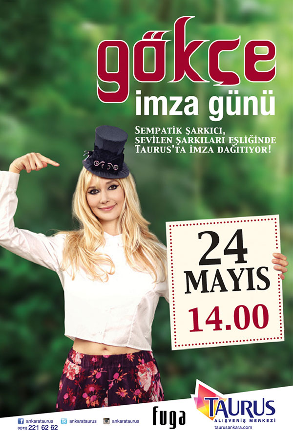 Her yaştan dinleyicinin sevdiği sanatçılar arasında yer almayı başaran Gökçe, 24 Mayıs Cumartesi günü saat 14.00’de şarkıları eşliğinde Taurus AVM de gerçekleşecek imza gününde sevenleri ile buluşacak.