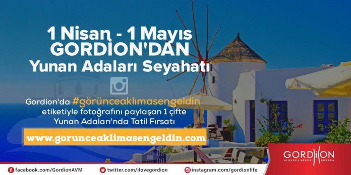 Gordion AVM düzenlediği instagram yarışması ile çift kişilik Yunan Adaları seyahati hediye ediyor.