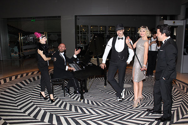 Great Gatsby filminin kahramanlarını andıran şov ekibi konuklara, danslarıyla, No4’e kadar eşlik etti.