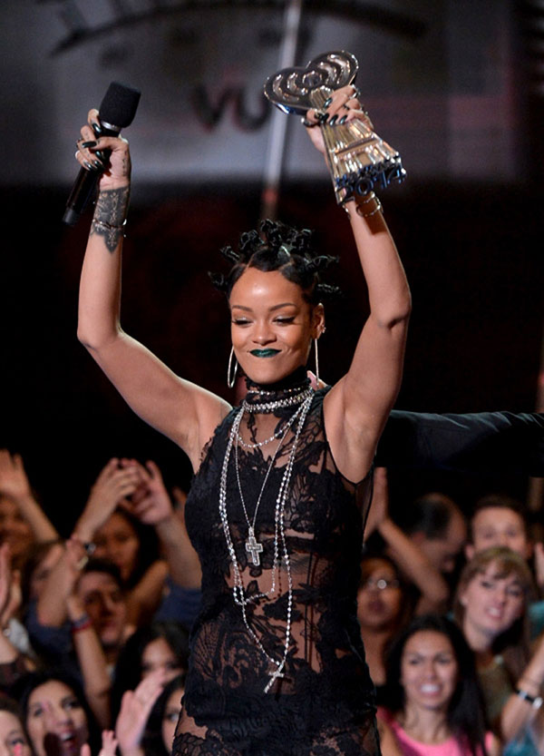 Ödül törenine transparan bir elbiseyle katılan Rihanna ise gecede yılın sanatçısı da dahil olmak üzere tam 4 dalda ödüle layık görüldü.