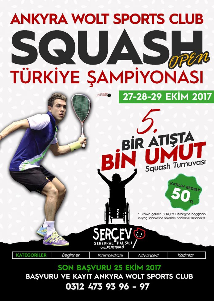 Ankyra Wolt Sports Club Squash Open Türkiye Şampiyonası 27-28-29 Ekim 2017 tarihlerinde düzenelenecek.