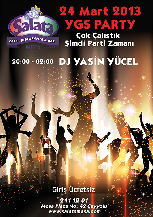 YGS sınavının ardından birçok mekanda YGS Partileri düzenleniyor Bunların arasında Salata Mesa; Escape Club ve Victoria’da düzenlenecek partiler ön plana çıkıyor